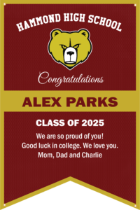 Senior year is a big deal! Help your student celebrate this milestone with a custom banner that hangs at Hammond High School.