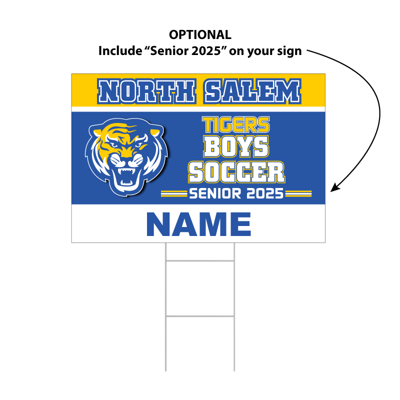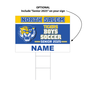 Support North Salem Athletic BoosterClub and show off your team spirit with our personalized vibrant yard signs! Join our fundraiser and proudly display these custom signs to champion our athletes and community pride. Seniors (12th graders) can include an optional “SENIOR 2025” tag on their sign to acknowledge their senior year.